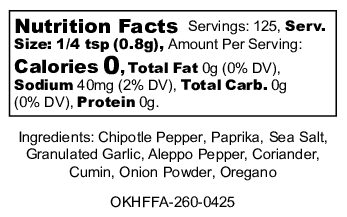 Bold and smoky chipotle peppers meet the earthy, citrusy notes of Mexican oregano in this authentic blend. Balanced with garlic, onion, and sea salt, it’s perfect for enhancing meats, vegetables, salsas, and classic Mexican dishes like tacos and enchiladas. Add a touch of Mexico to every meal!