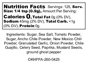 Ignite your culinary creations with this bold and fiery seasoning blend. Ghost pepper delivers an intense heat that builds with each bite, perfectly balanced by the coarse texture of premium sea salt. A medley of chiles adds depth and complexity, while cane sugar provides a subtle sweetness that rounds out the flavors. This versatile blend is perfect for grilling, roasting, or as a finishing touch to your favorite dishes. Dare to spice up your meals and embrace the heat!